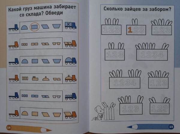 Задания на логику, внимание, арифметику для детей 4-6 лет, разбитые по временам года. Зайцы спрятались за забором, но видны уши — сколько там зайцев? В банке разные фрукты — сколько в этой банке яблок, а сколько груш? Прочитай слова и соедини слова и картинки. Фрукты клади в компот, а овощи — в суп. Роботы и смешные монстрики,…